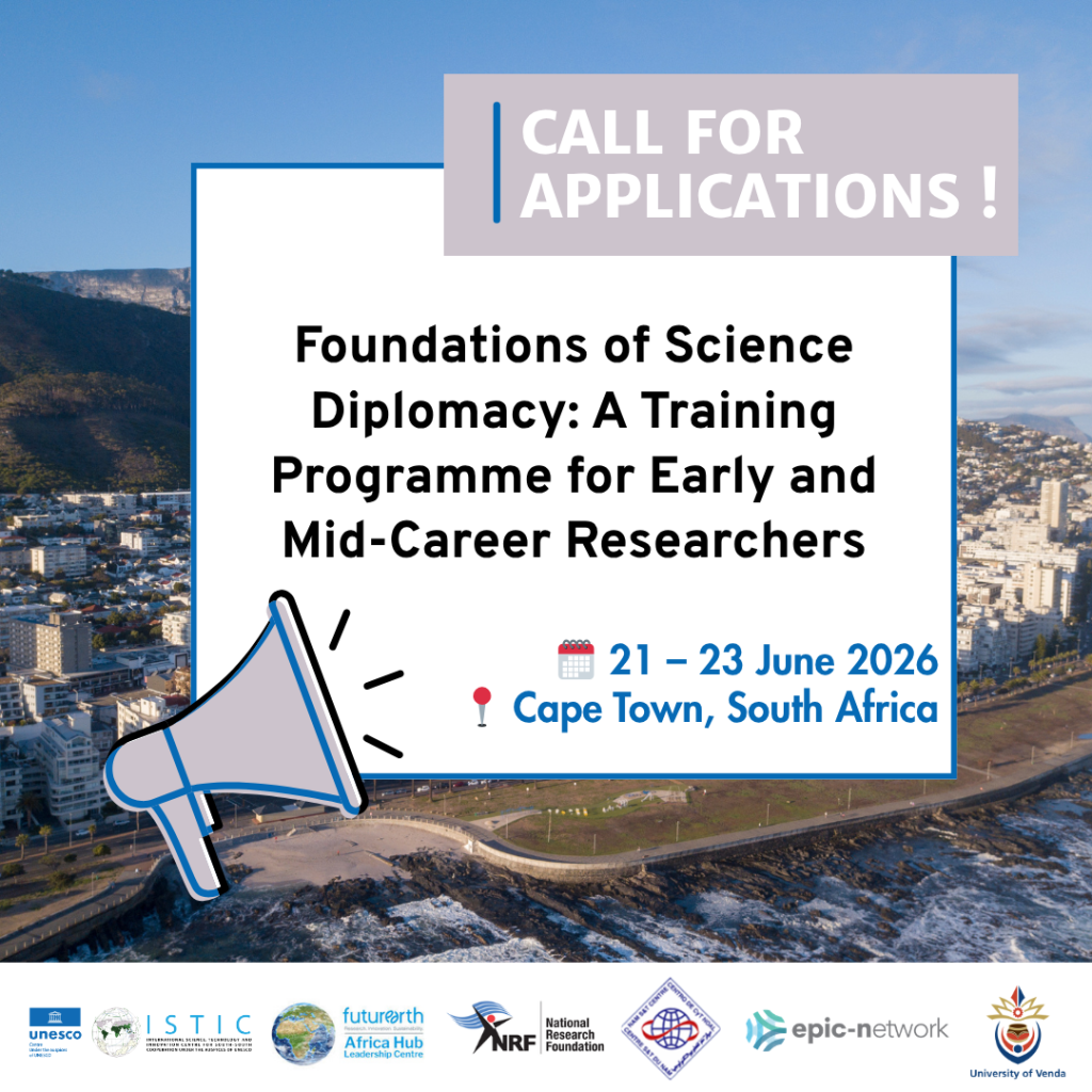 The International Science, Technology and Innovation Centre for South-South Cooperation (ISTIC), in collaboration with Future Earth Africa Hub and its Leadership Centre (FEAHLC) the National Research Foundation of South Africa (NRF), The Centre for Science and Technology of the Non-aligned and Other Developing Countries (NAM S&T Centre), the University of Venda and Epic-Network are pleased to invite applications for a 3-day Training programme for Early and Mid-Career Researchers.